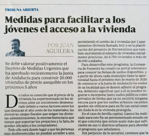 El diario ABC de Sevilla, ha publicado un artículo del gerente de GAESCO, Juan Aguilera, titulado: “Medidas para facilitar a los jóvenes el acceso a