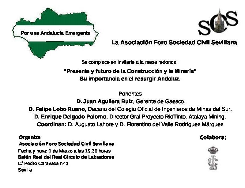 El Gerente de Gaesco pronunciará una conferencia hoy a las 19,30 horas en el Círculo de Labradores de Sevilla sobre el Sector de la Construcción y el resurgir de Andalucía organizada por la Asociación Foro Sociedad Civil Sevillana