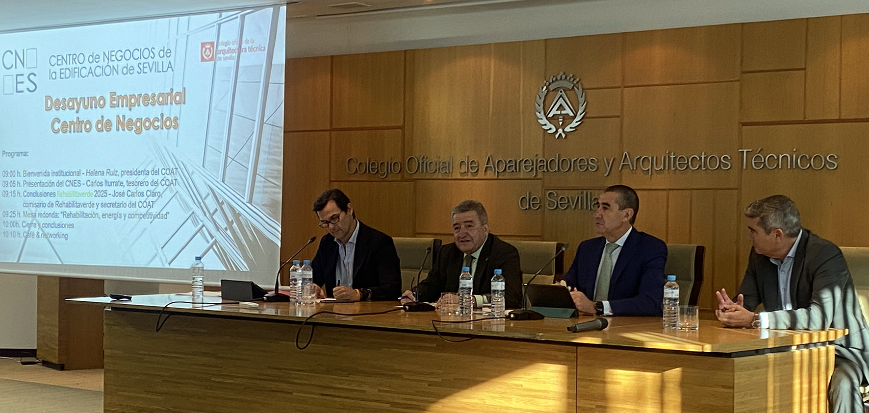 El Centro de Negocios de la Edificación del Colegio Oficial de la Arquitectura Técnica de Sevilla ha acogido un encuentro empresarial en el que Juan Aguilera en nombre de GAESCO a participado en la mesa redonda: “Rehabilitación, energía y competitividad”.