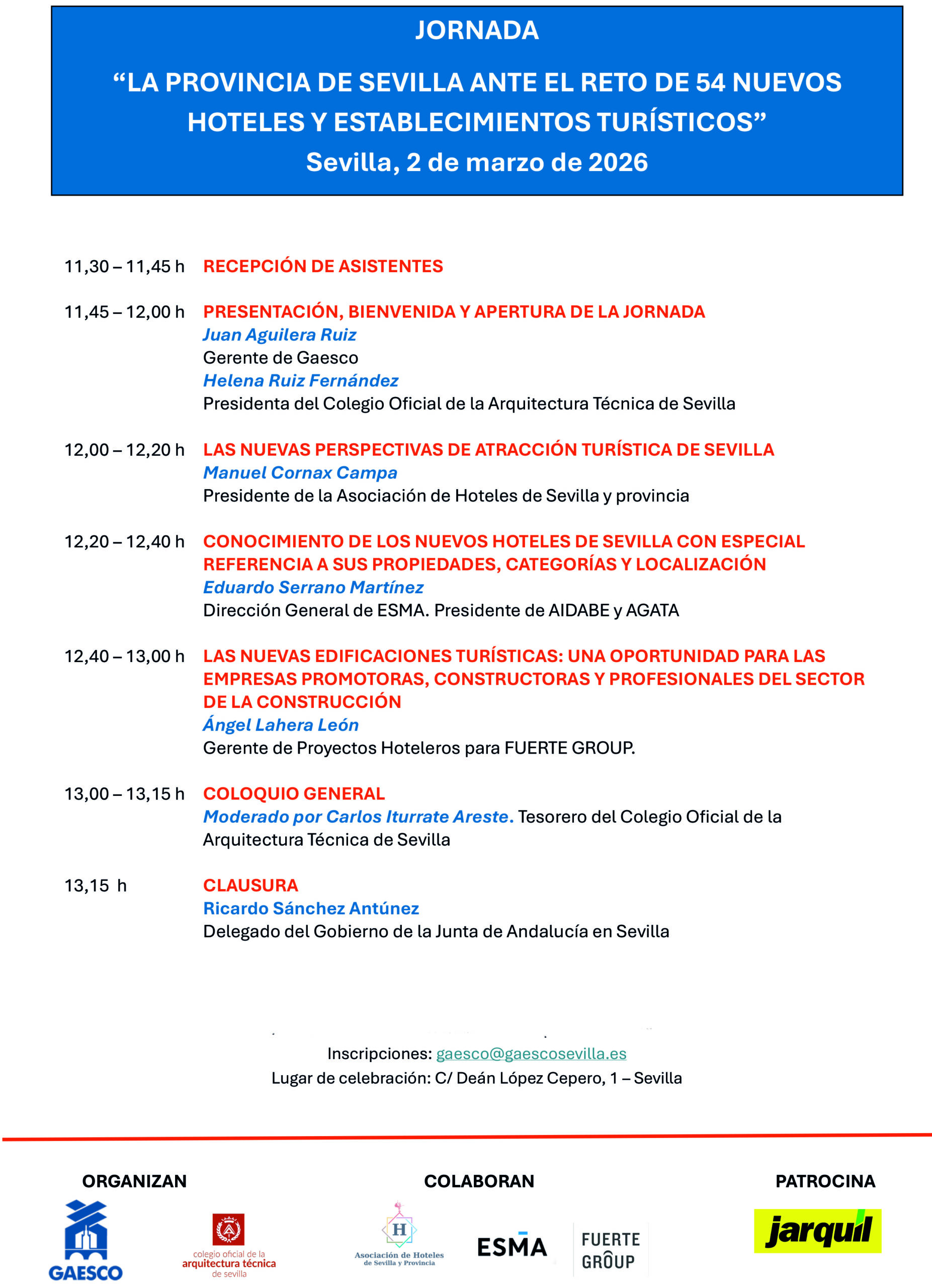 La jornada del 2 de marzo ha sido organizada por GAESCO y por el Colegio Oficial de la Arquitectura Técnica de Sevilla.