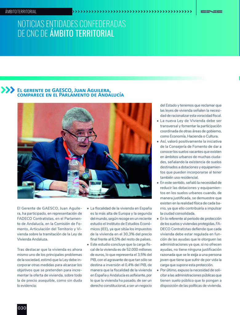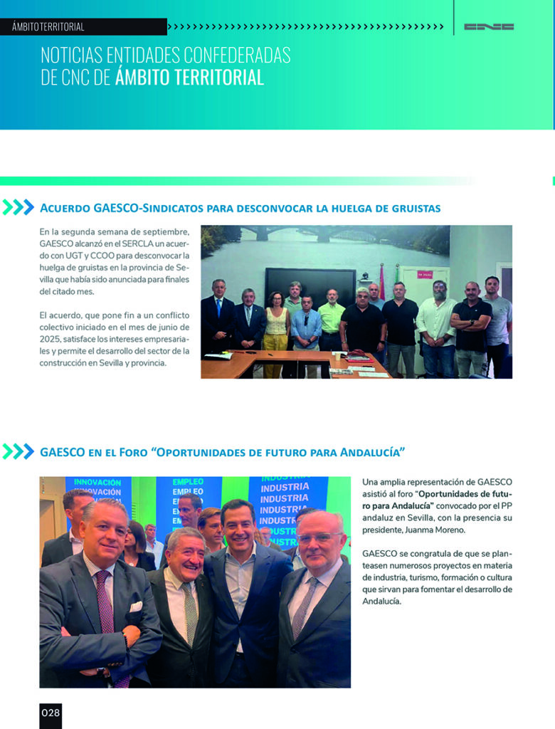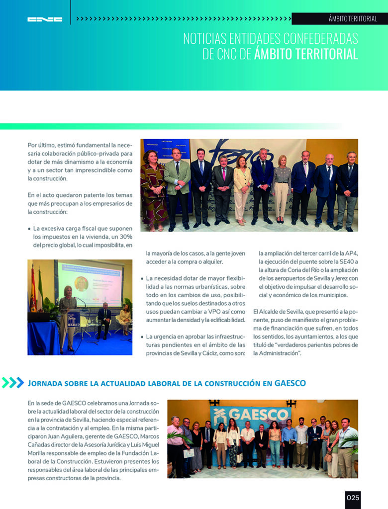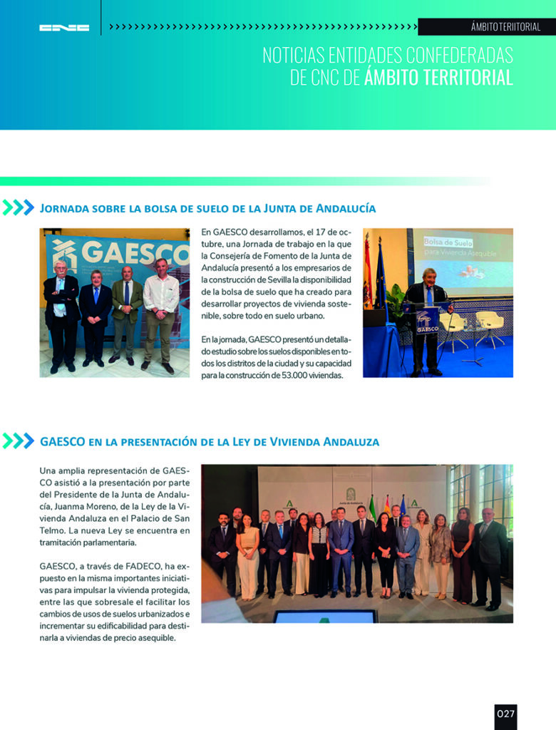 La revista de la Confederación Nacional de la Construcción (CNC) recoge en su último número de diciembre la intensa labor institucional y divulgativa que desarrollamos a diario en GAESCO para poner en valor nuestro sector y generar sinergias con los principales agentes políticos, económicos y sociales.